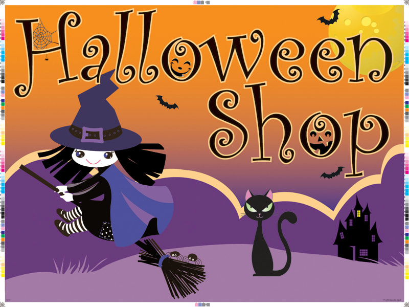 Sign design for Dillard's Halloween Shop within their department stores.